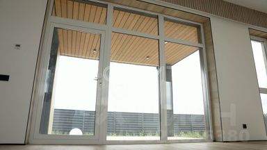 Высокие потолки 3,2 метра и большие панорамные окна дарят ощущение дополнительного пространства и наполняют дом солнечным светом.