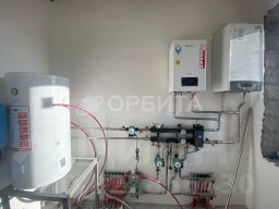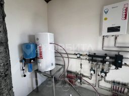 Все коммуникации заведены в дом, электричество 380В, скважина, септик. Отопление теплый пол + радиаторы. Установлен газовый и электрокотел, бойлер на 200 литров. Разводка труб выполнена из нержавеющей стали. Стены и пол выровнены под маяк, финишная шпатлевка стен. Имеется отмостка , забор и парковочное место под автомобиль .