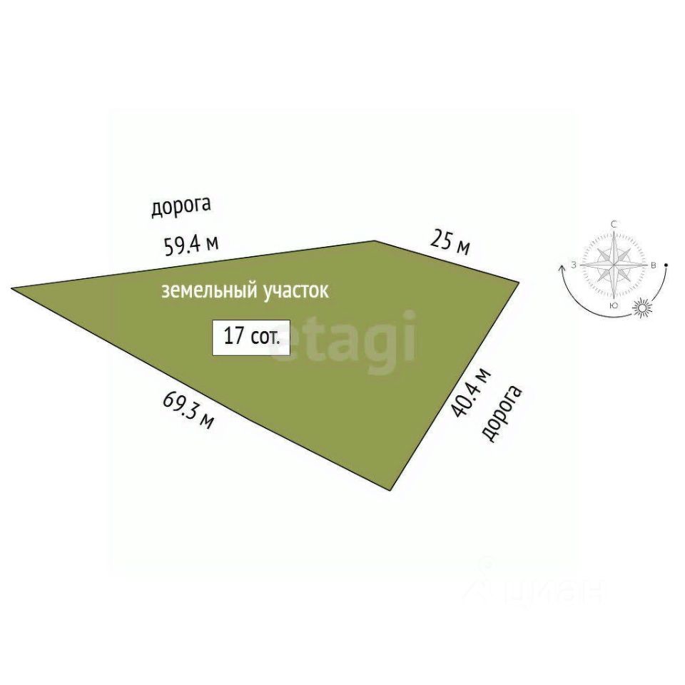 Участок просторный 17 соток на нем можно реализовать все свои мечты и построить свой дом.