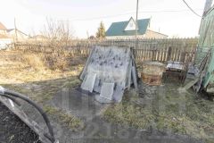На участке растут плодоносящие дереввья. Имеется теплица и контейнер для хранения хоз инвентаря.