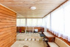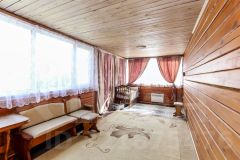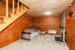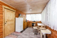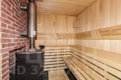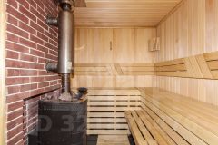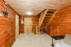 Построен из бруса. Брус уже дал усадку. Утеплен ленточной паклей. Современный ремонт. На первом этаже банный комплекс. Кухня. Так же технические помещения.