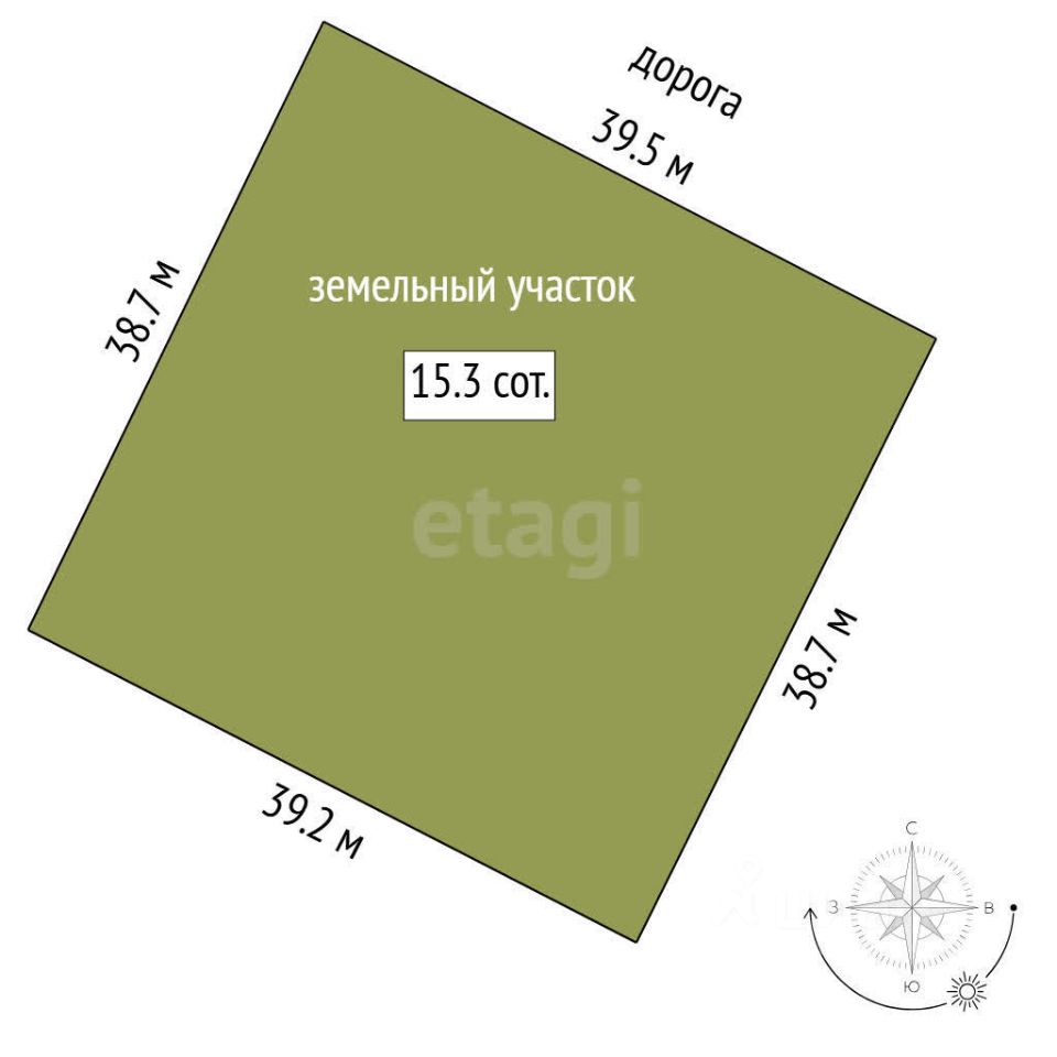 Участок площадью 15 соток, имеет правильную форму, идеально подходит для строительства дома. Участок высокий.
