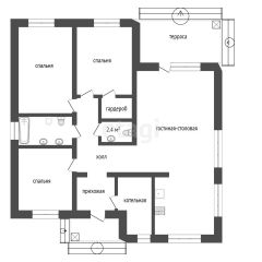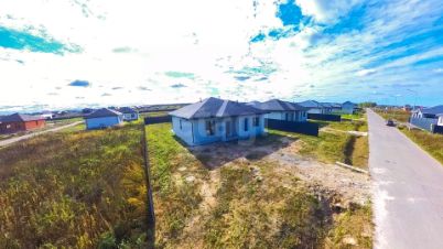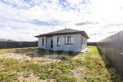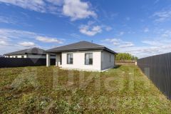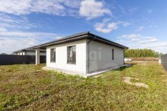 Черновая отделка внутри, материал стен - керамзитоблок (300мм), утеплитель - минвата,штукатурка мокрый фасад, крыша выполнена в металлочерепице. Установлены пластиковые окна. Имеет функциональную планировку -три изолированные комнаты (12,13 и 16 м2); два сан узла, гардеробная из спальни, просторная кухня-гостиная 40 кв.м. с панорамным выходом на террасу. Скважина - 40м, Септик переливной. Можно подключить газ, стояк возле участка.
