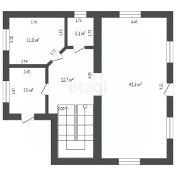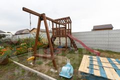 1 этаж: кухня-гостиная (40 м.к), кабинет, санузел. 2 этаж - 3 спальных комнаты.