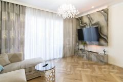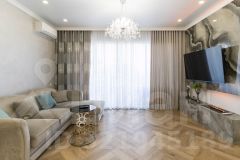 Две спальных комнаты, игровая комната, совмещенный сан.узел, гардеробная-постирочная. На полу в коридоре и комнатах ламинат, стены окрашены влагостойкой краской. В каджой комнате установлен кондиционер. Сан.узел полностью в керамограните (теплый пол), установлена ванна, гигиенический душ. В гардеробной установлены стиральная и сушильная машины. Практичная система хранения вещей с вешалами, полками и ящичками.
