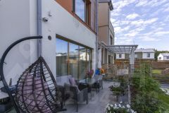 Земельный участок 3,4 сотки. На нем прекрасно размещены открытая терраса, небольшой сад, тепличка и идеальны