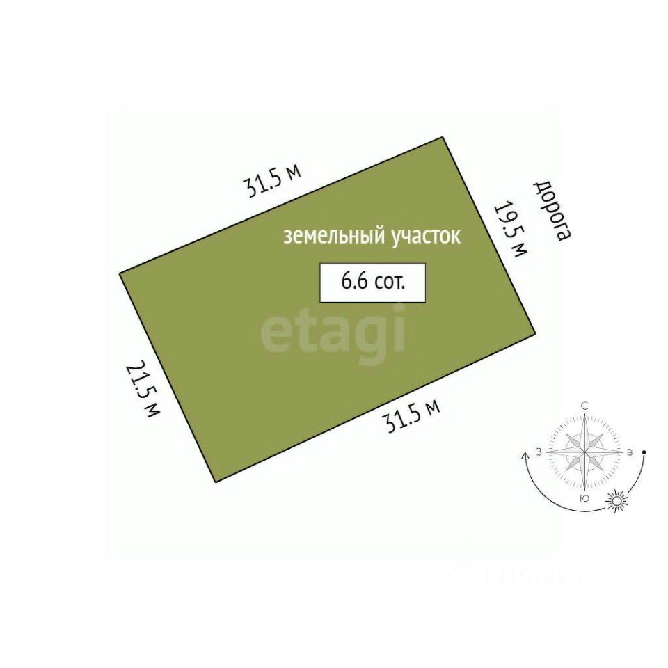 Площадь земельного участка: 660 кв.м., размером 21х32 метра.