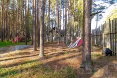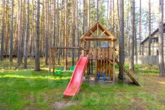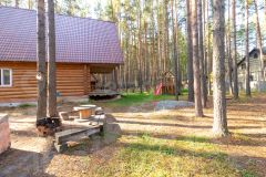 На территории находится отдельно стоящая баня, размером 6 на 6. На участке оборудована детская площадка. Дорога зимой регулярно расчищается, что обеспечивает подъезд в любое время года. Участок огорожен. Забор из профнастила. Отопление электрическое, с возможностью удаленного управления (Система Умный дом). Заведен Интернет.