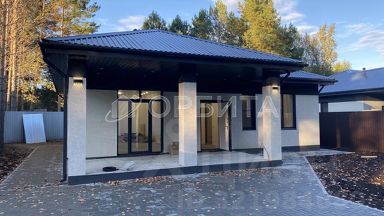 В доме выполнена предчистовая отделка: стены подготовлены под обои, стяжка на полу, натяжные потолки со светильниками.