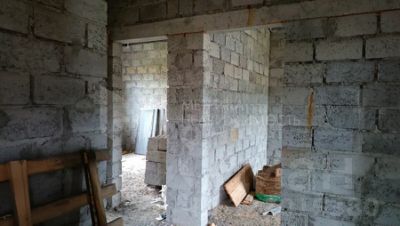 Стены первого этажа возведены из керамзитоблока, армопояс по верху стен.