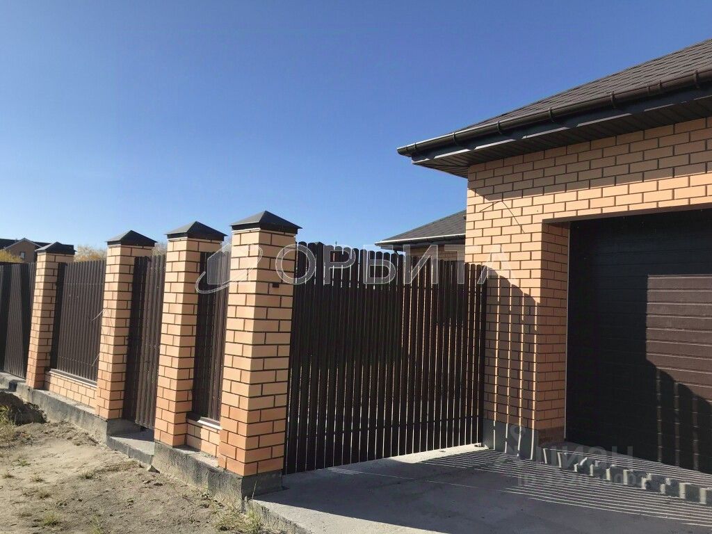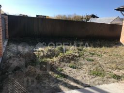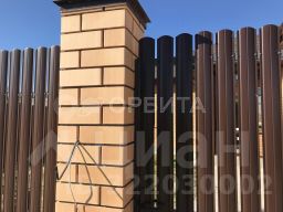 Придомовая территория выровнена, огорожена капитальным забором. Фасад - кирпичные колонны, металлический штакетник.