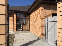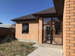 Дом одноэтажный, 155 кв. метров с гаражом, застекленной входной группой и террасой расположен на участке 8,34 сотки.
