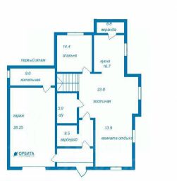 Первый этаж. Гараж с котельной 37кв.м, коридор 8,5 кв.м, сан-узел 5 кв.м, спальня 14.4 кв.м,
