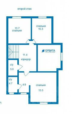 Второй этаж: Две изолированные спальни 13,7 и 15,3 кв.м, мастер спальня 18,5 кв.м + сан-узел 4,7, коридор 11,4 кв.м, сан-узел 5 кв.м.