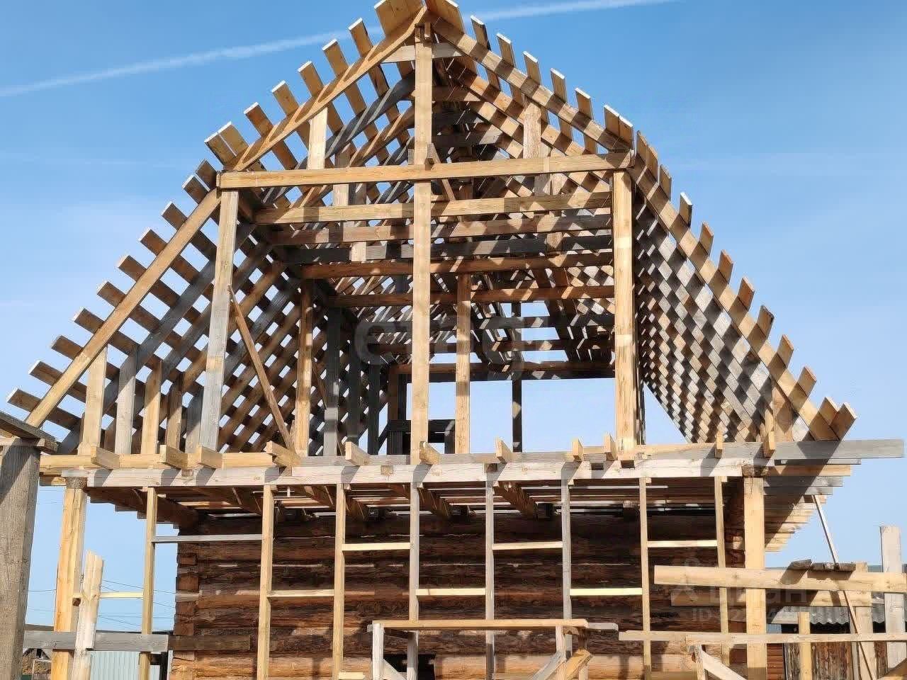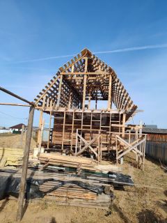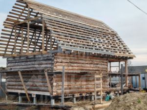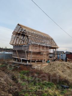 На территории находится объект незавершенного строительства — деревянный сруб размером 6x9 метров. Возведен свайный фундамент из железобетонных свай глубиной 3 метра, полностью готов первый этаж и смонтирован каркас второго. Также на участке установлен переливной септик объемом 5 м. Имеется проектная документация на дом; при необходимости текущий собственник может взять на себя завершение строительства за отдельную плату.
