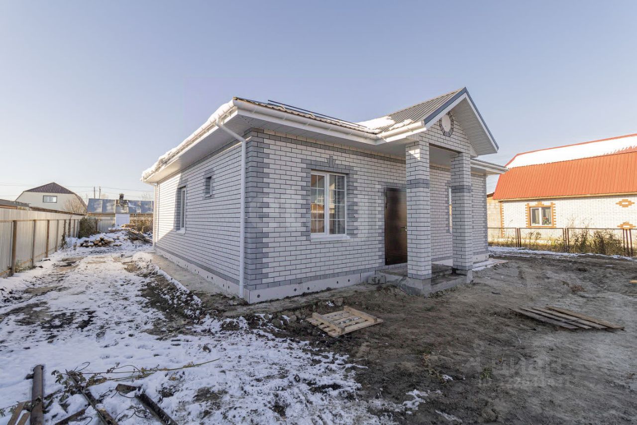 Дом построен в 2025г из керамзитоблоков, облицовка - силикатный кирпич, утеплитель - пенопласт. Кровля - металлочерепица. В доме улучшенная черновая отделка: стены выровнены под маяк, финальная стяжка пола, теплый пол (водяной) по всему периметру дома. Высота потолков - 3м!