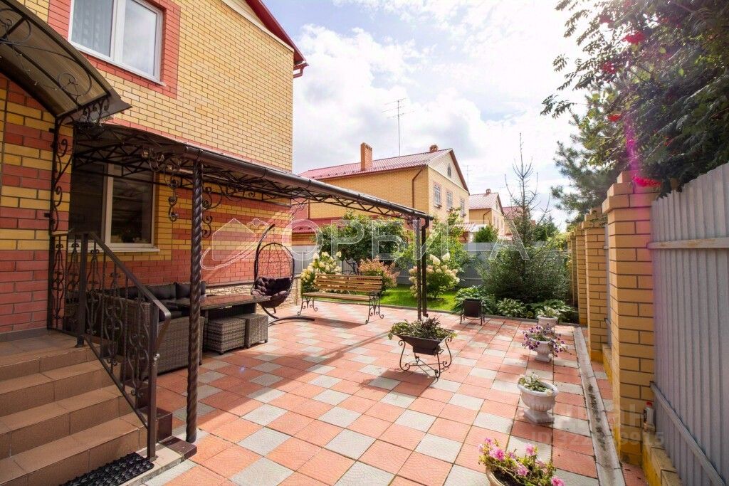 Два навеса для авто, зона отдыха, плитка и дорожки вокруг дома.