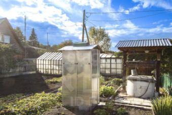 На участке имеется баня, туалет, хозпостройки, две капитальные большие теплицы и две небольшие теплички, бак для воды, есть мангал и печь для копчения, парковка. Из насаждений крыжовник, малина, смородина, вишня, рябина, клубника, две яблони, жимолость, ирга,