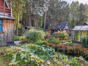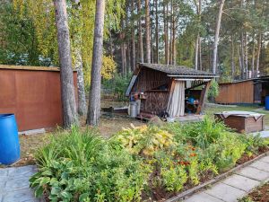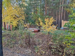 Часть участка занимают взрослые сосны, сад - огород расположен на солнечном открытом месте.