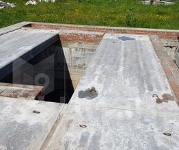 Фундамент лента (бетон привозили с города миксерами) - блоки ФБС в 3 ряда-ленточный фундамент - плиты перекрытия.