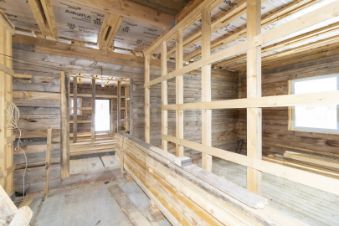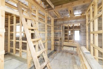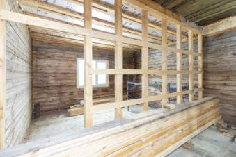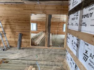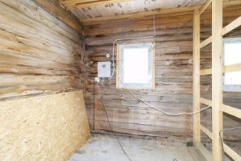 Дом выполнен из бруса, имеет два этажа. Фундамент ленточный. Первый этаж, согласно проекту, имеет кухню-гостиную, спальню, хозяйственную комнату, кухонную кладовую, санузел и бойлерную. Второй этаж имеет три спальные комнаты, предполагается зона для второго санузла и гардеробной комнаты. Крыша дома и пол второго этажа утеплены. Установлены пластиковые окна. Электричество заведено в дом, мощностью 380 квт. Установлен септик на 10 кубов, канализация заведена в дом. Скважина на 40 метров, заведена в дом. Газовый стояк установлен возле участка, по возможности можно подключать. Земельный участок правильной , квадратной формы. Рядом с домом есть баня. Дом требует доработки. В этом случае, у покупателя есть возможность достроить дом на свой вкус, т.к . строительный материал, который не успели задействовать готовы оставить при продаже.