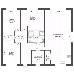 1 ЭТАЖ: При входе расположена просторная котельная 7 кв.м., кухня-гостинная 37,5 кв.м., сан.узел 7 кв.м., комната свободного назначения 11,1 кв.м.
