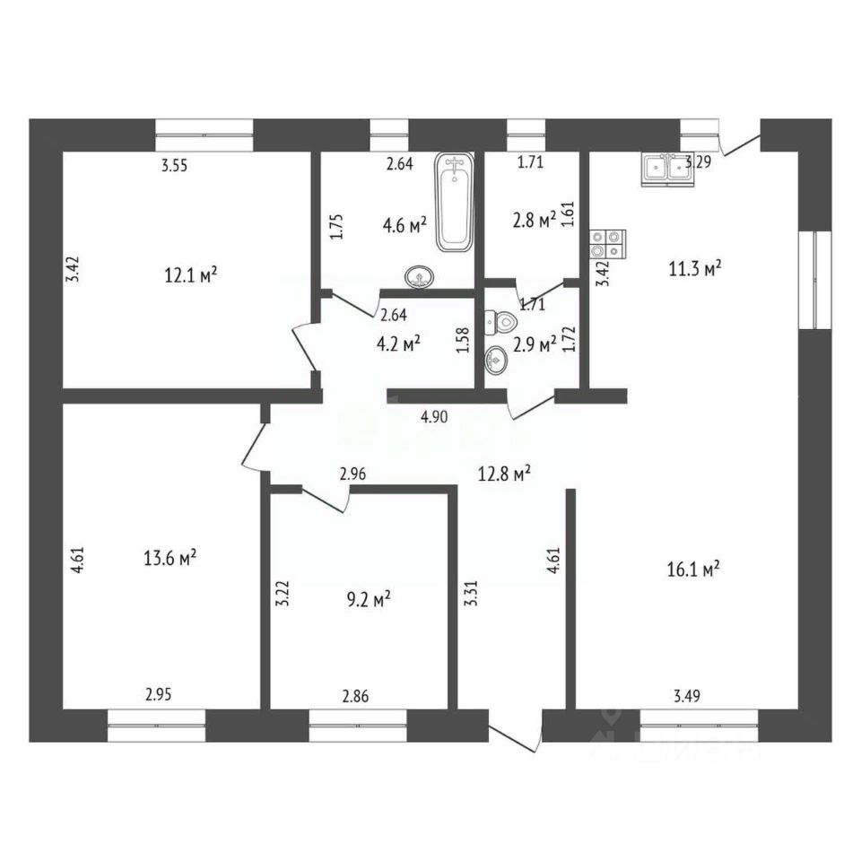 Удобная планировка: Каждому члену семьи обеспечено личное пространство благодаря продуманному расположению комнат.