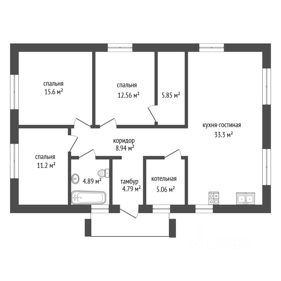 Три изолированные спальных комнаты правильной формы обеспечивают удобство и комфорт для всей семьи, а также отдельные помещения выделены под гардероб и котельную.