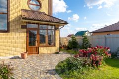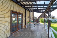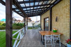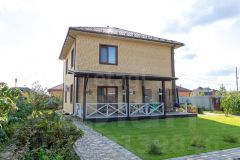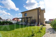 Коттедж общей площадью 145 м² расположен на ухоженном участке 8,77 соток с террасой и продуманным ландшафтным дизайном. Дом построен из керамзитобетонных блоков, облицован керамическим кирпичом и утеплён пенополистиролом.