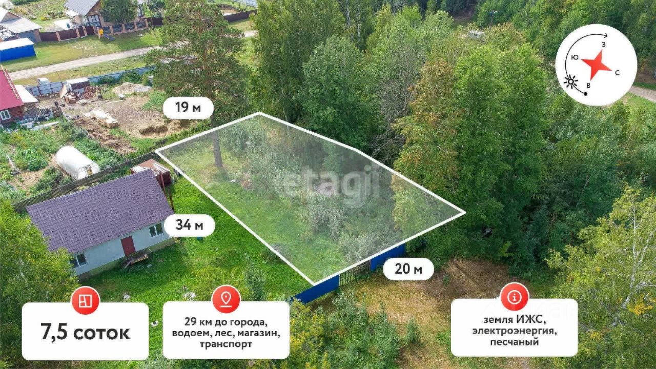 Участок площадью 7,5 соток расположен в живописном и экологически чистом районе, окружённом лесом. Насладитесь свежим воздухом, тишиной и уединением.