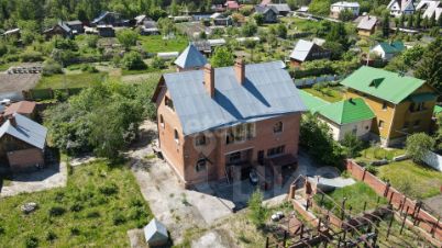 Продается загородный дом круглогодичного проживания. Расположен дом в деревне Речкина по Ирбитскому тракту, в 50 минутах от Тюмени. Два смежных участка, всего площадь 40 соток. Вокруг живописные просторы, за участками открывается вид на реку Тура, сосновый бор, поэтому у покупателя будет уникальная возможность ощутить себя в полном единении с природой. Здесь можно наслаждаться всеми прелестями загородной жизни - чистый воздух, тишина, охота/рыбалка, ягоды, грибы. Дом кирпичный, фундамент ленточный, отопление электрокотел (есть возможность подключения газа, по улице проходит труба), водопровод скважина, вода питьевая, канализация септик 10 кубов. В цоколе находится жаркая сауна и бассейн. На 1 этаже кухня, гостиная с камином, спальня, санузел и веранда. На 2 этаже находятся 4 спальных комнаты и санузел. 3 этаж мансардный. Площадь дома 374 кв.м., из них жилая площадь 120 кв.м. Мебель готовы оставить по договоренности. Придомовая территория занята цветником, много деревьев и кустарников. Также на территории русская баня, теплицы, колодец, погреб, беседка на фундаменте. Кирпичный забор по всему периметру.