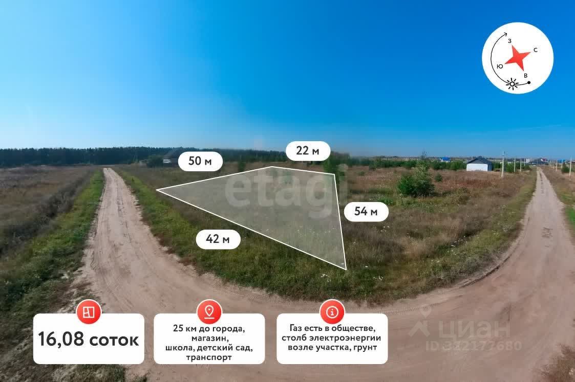 По коммуникациям: газ есть в посёлке, столб электроэнергии находится рядом с участком, дорога к участку - грунтовая!