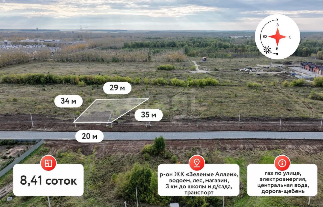 Ваш участок расположен в привлекательном пригородном районе, окружённом зелёными насаждениями и чистым воздухом, обеспечивающим комфортный отдых и близость природы. При этом удобный доступ к остановкам общественного транспорта и всей необходимой городской инфраструктуры обеспечивает удобство проживания.