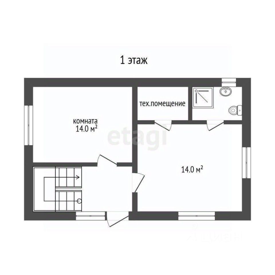 1 этаж: тех. помещение , туалет, душевая , кухня гостиная .