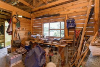 • Дом: Сруб 5х7 м из бревна. Высокие потолки, просторная комната отдыха, небольшая мастерская и дровник.