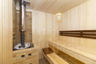 Построенный из керамзитоблоков с кирпичной облицовкой, дом предлагает хорошую теплоизоляцию, что является важным аспектом для комфортного проживания зимой. Баня из бруса также облицована кирпичом, что добавляет эстетическую привлекательность и долговечность.
