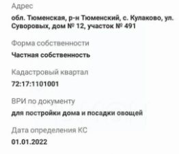 Продается земельный участок в самом селе Кулаково. Кадастровый номер: 72:17:1101001:67.