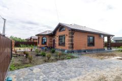 Стены дома выполнены из керамзитоблока, утеплитель из минеральной ваты. Облицовка фасада оформлена кирпичом. Крыша выполнена из металлочерепицы.