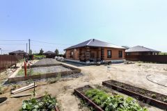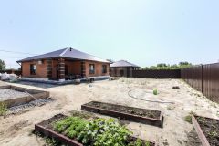 Дом площадью 110.9 кв.м. расположен на участке 9 соток. Участок ровный, огорожен забором по фасаду, установлены распашные ворота и входная калитка, периметр забора из профнастила.