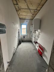 - пол цементно-песчаная стяжка, монтаж эл. проводки, сантехнические коммуникации заведены, теплый пол.