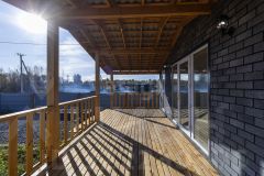 Дом для круглогодичного проживания , каркасный , выполнен из добротных, современных материалов, очень теплый и красивый с витражным остеклением .