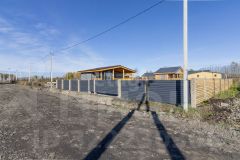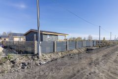 Территория выровнена, машиноместо отсыпано щебнем, забор деревянный, обработан пропиткой.