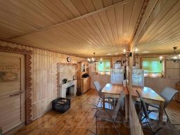 Участок 7,94 сотки - ухожен, благоустроен: есть декоративные кустарники, деревья и цветы, теплица. Построена баня с комнатой отдыха на втором этаже (зимний вариант), обустроена детская игровая зона с качелями и горкой. Также имеются хозяйственные постройки для хранения.