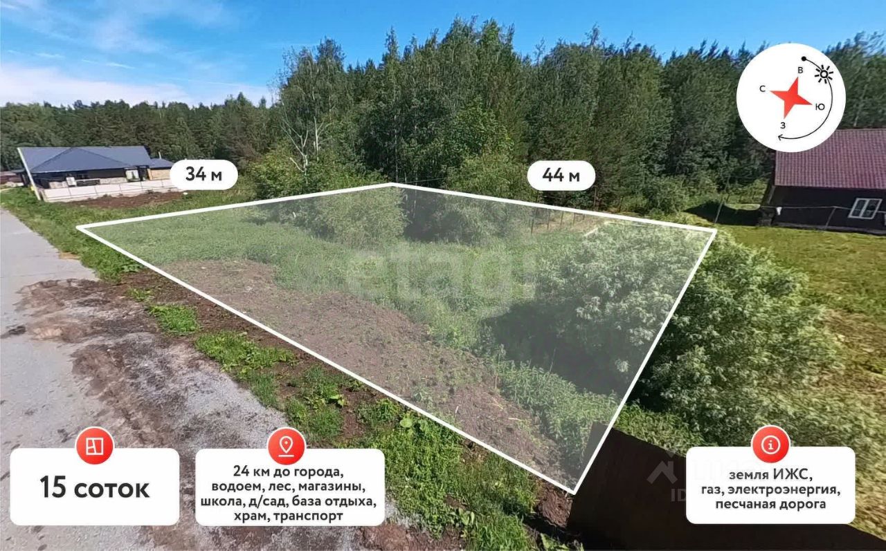• Земельный участок 15 соток для строительства жилого дома, в с.Каменка. Участок правильной прямоугольной формы, на высоком месте. Хорошие широкие дороги. Недалеко находиться река Тура. По улице проложены газ и электричество. В с.Каменка есть школа, больница детский сад и Храм.
