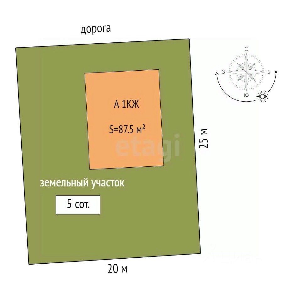Высокое место. Участок 5 соток ИЖС, размеры участка 20 х 25 м. Дом размерами по внешнему контуру 11.5 х 9.75 м. И при этом остается место под гараж,баню, мангальную зону, зону огорода и садовых насаждений. Все градостроительные нормы выдержаны. Дом оформлен в собственность с техническим планом.