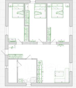 Планировочным решением предусмотрена кухня-гостиная 22 м кв., три изолированные комнаты 16, 12 и 13 м кв., большой санузел 12.2 м кв..