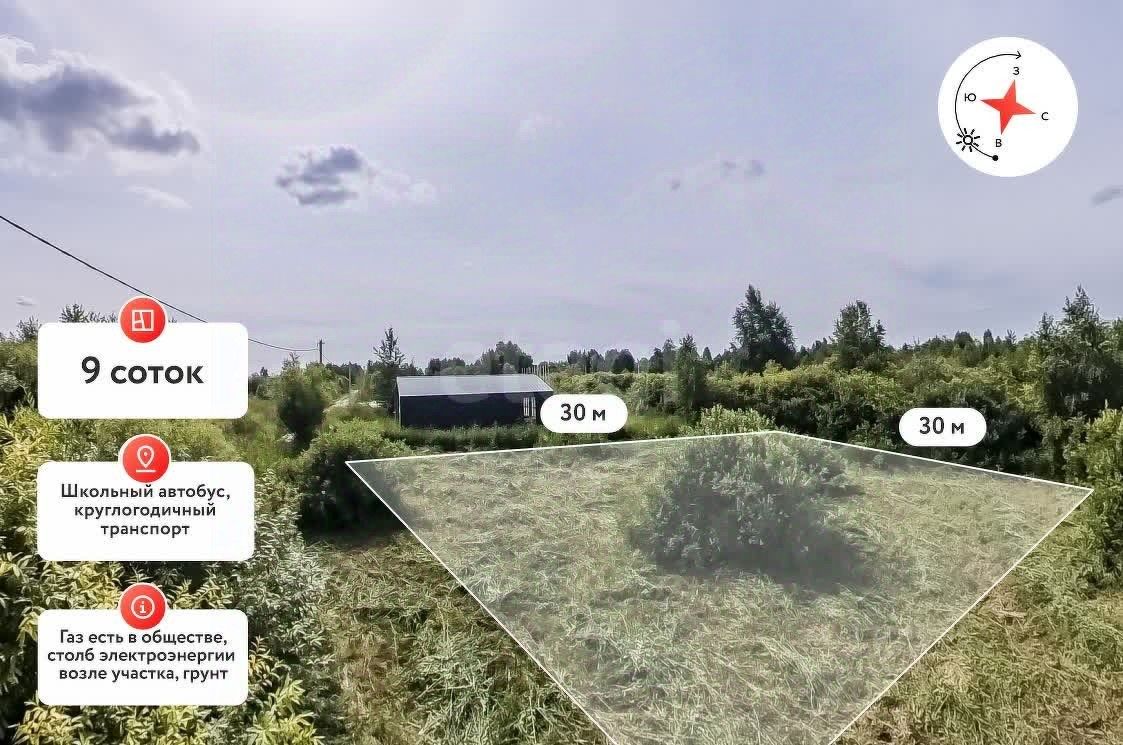 Территория полностью готова для строительства: установлен столб для подключения электричества, проведена линия интернета, дороги отсыпаны щебнем и поддерживаются в хорошем состоянии. Участок имеет правильную форму, что упрощает планировку будущего дома и зонирование территории. Район активно застраивается, что свидетельствует о его перспективности и росте инфраструктуры. Транспортная доступность на высоком уровне: круглогодично ходит автобус 156, рядом проходит объездная дорога, обеспечивающая быстрый выезд на основные магистрали.