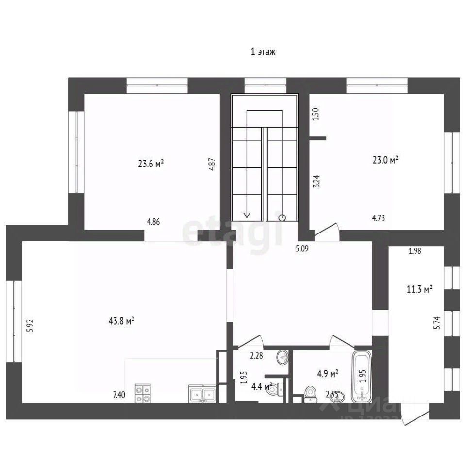 Площадь дома 270 кв.м., высота потолков на первом и втором этажах 3,4 м.
