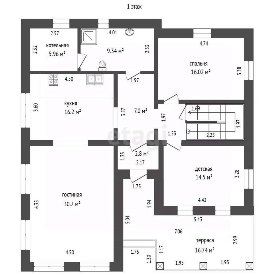 Терраса площадью 16,74 кв.м. Входные двери с терморазрывом. При входе в дом обустроен небольшой тамбур. За дверью находится прихожая. Грязная зона выложена керамогранитом.
