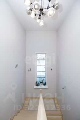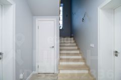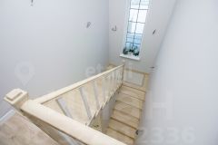 Лестница из бетона. Ступени и перила выполнены из массива сосны. На стенах выведена линия для светильников. Установлены проходные выключатели. Для естественного освещения лестничного пространства пред